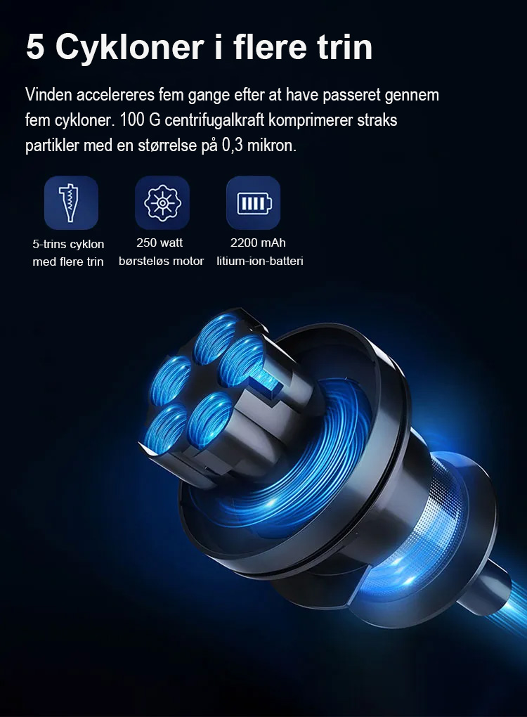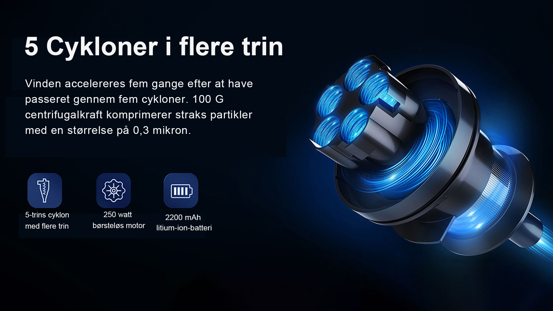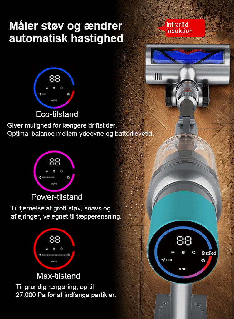 Le puissant moteur X9 de StarPod tourne à plus de 135 000 tr/min et génère une puissance d'aspiration de plus de 27 000 Pa. Il peut aspirer presque tous les types de saletés.
